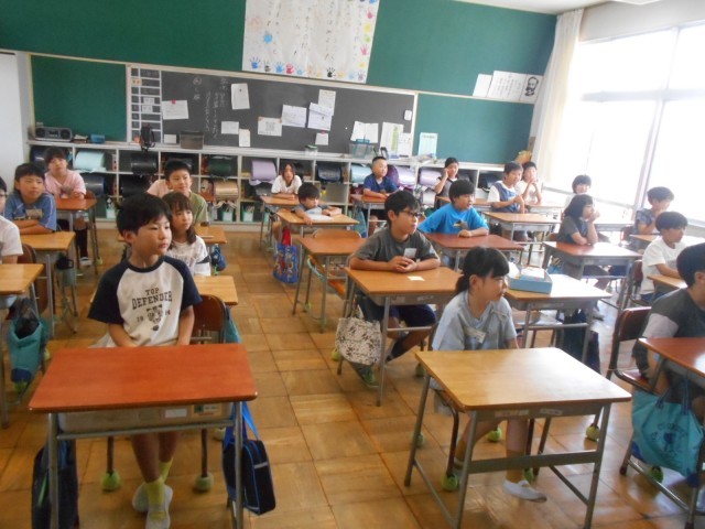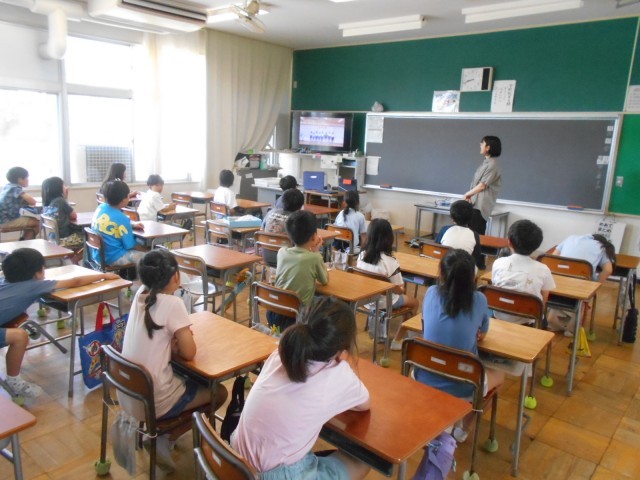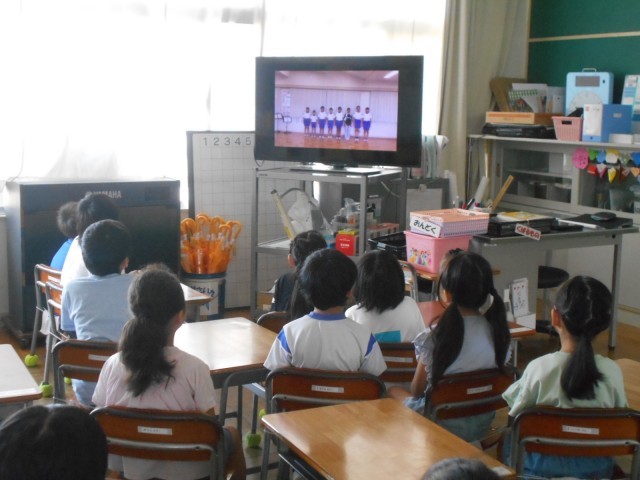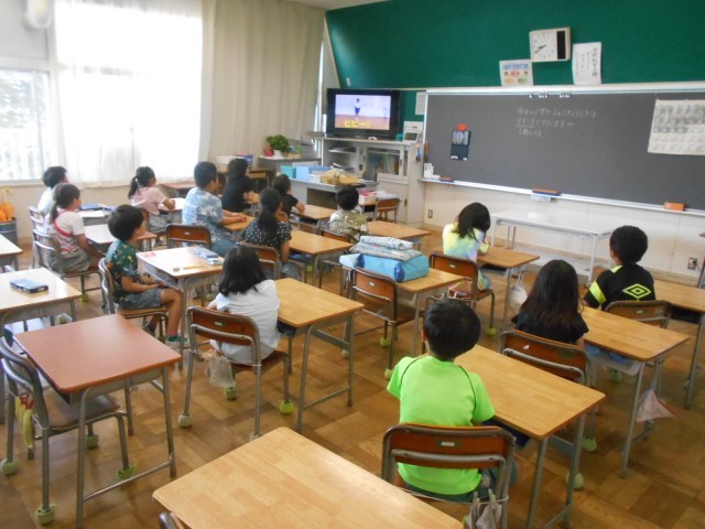 終業式に続き、児童会本部役員の人たちが、夏休み中の生活について、わかりやすくポイントをまとめた動画を視聴しました。