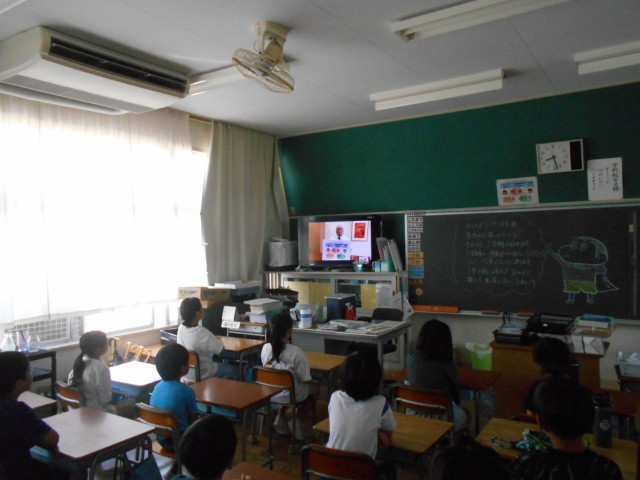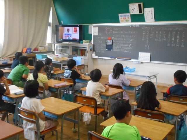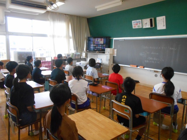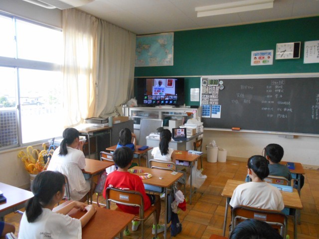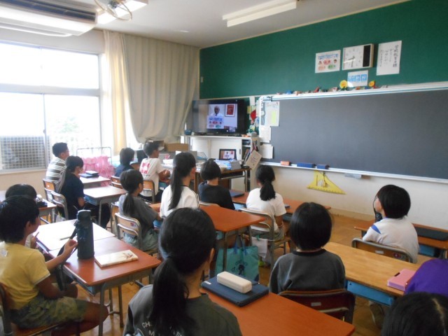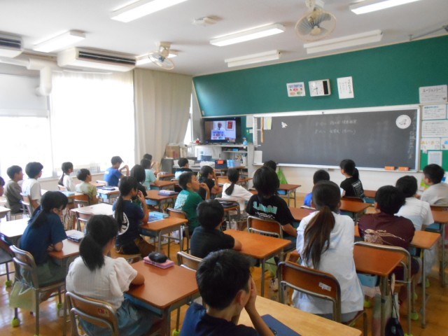 各教室をリーモートで繋ぎ、始業式を行いました。