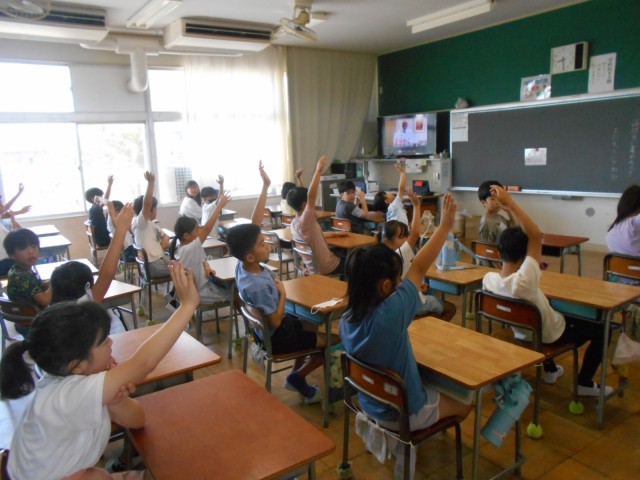 私からは、この2学期も、 「笑顔・やる気・友だちいっぱい」を合い言葉に、よりよい神流小を目指して、一層活躍してほしい。よりよくなるために自分で考えて、自分で決めて、行動する。よりよいものを創り上げるために、自分たちで考えて、話し合って決めて、自分たちで行動してほしいと伝えました。