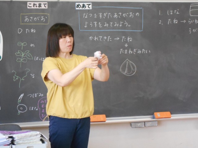 1年生はこれまで育ててきた「あさがお」の今について考えました。