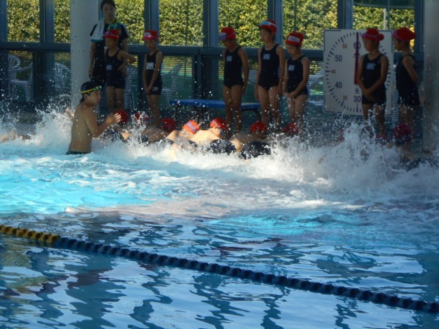 今日は、外での運動は禁止ですから水泳の授業でラッキーでしたね。