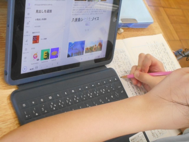 なかよし1組では夏休みの思い出を作文に書いていました。