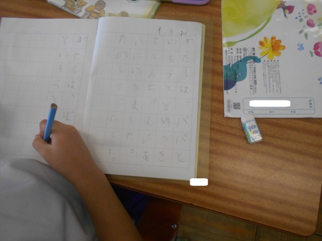 今日のめあては「夏休みの思い出を文で書こう」です。