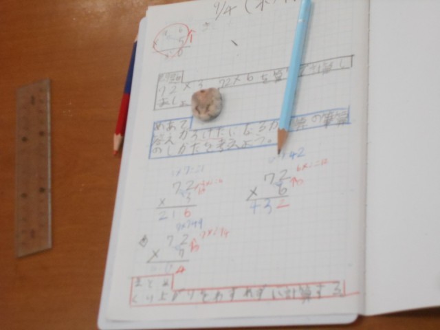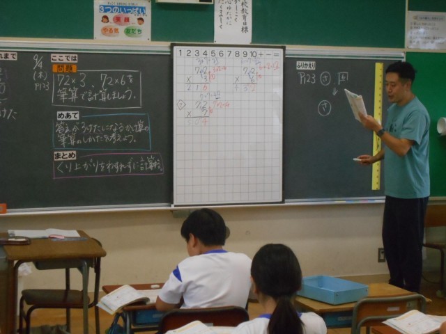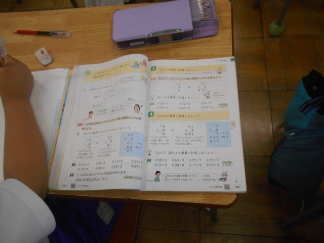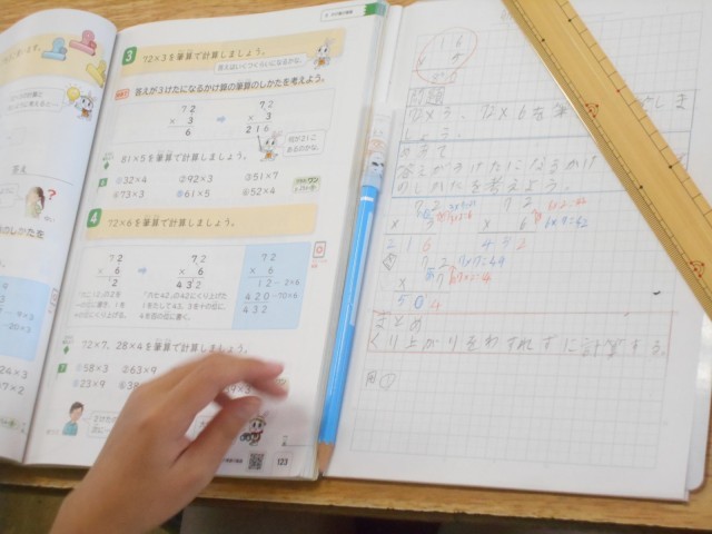 今日のめあては「答えが3けたになるかけ算の計算の仕方は?」