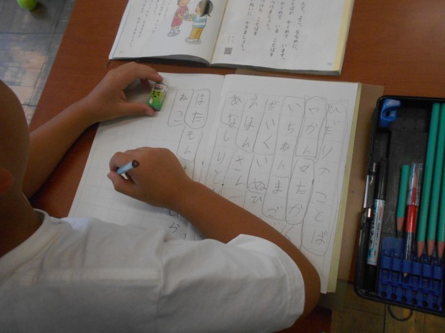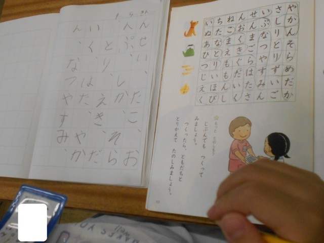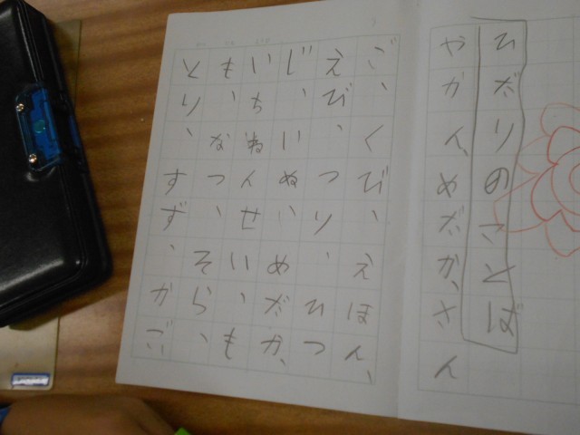 表の中から、言葉を見つけてノートにたくさん書き出していました。