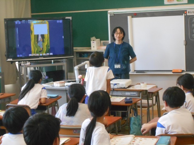 今日は、まず、手始めに先生が映し出すキャラクターを当てるゲームからスタートしました。