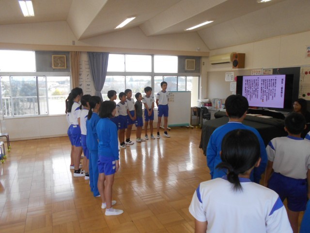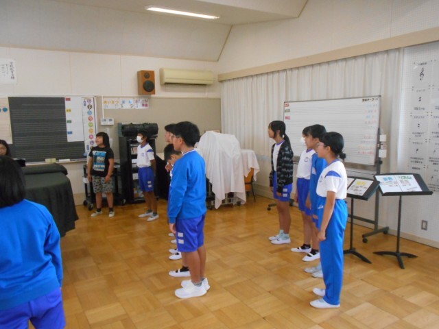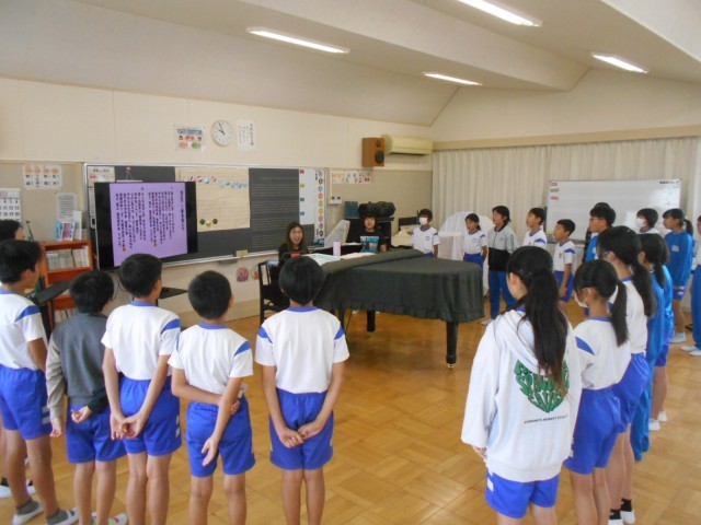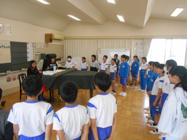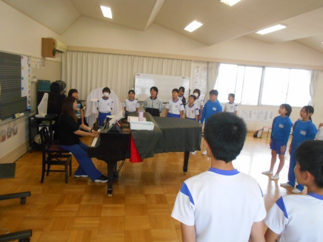 6年2組の皆さんが、音楽の先生を囲んで、「Wish~夢を信じて」を楽しそうに歌っていました。