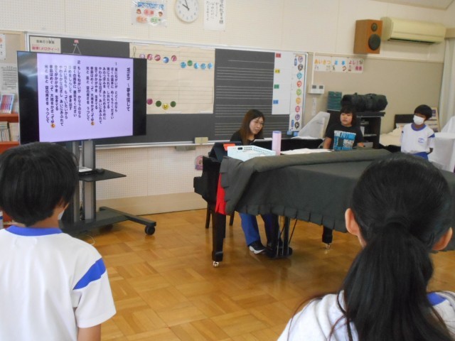 校長室にいたら、音楽室からきれいな歌声が聞こえてきたので、すぐに行ってみました。