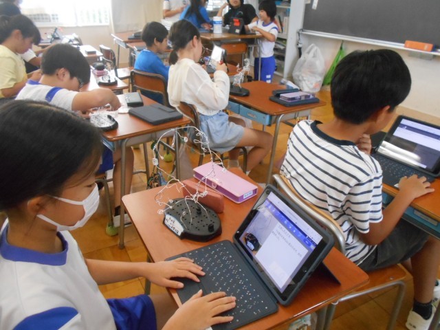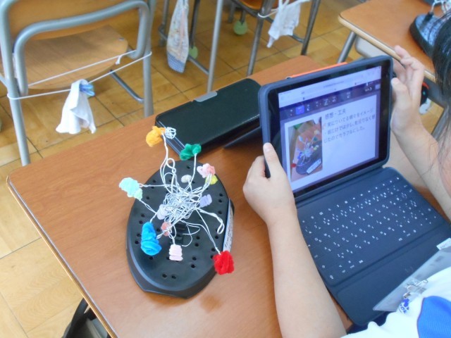今日は、まとめとして写真に撮って、工夫したところや作品に込めた思いなどをシートにまとめ、オクリンクで提出していました。