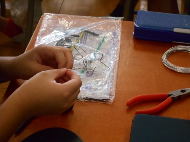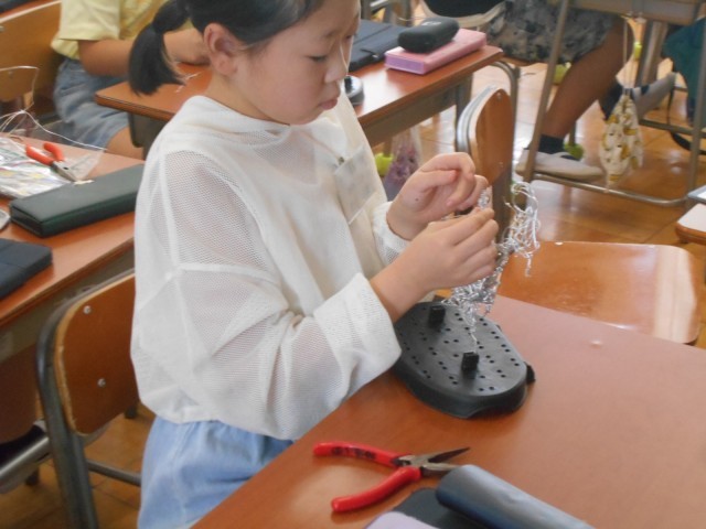 イメージを膨らませ、一本の針金から思い思いの立体を制作しました。ねじる、曲げる、組み合わせるなど様々な工夫を作品に取り入れ多様です。