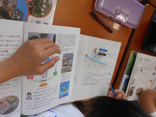 自然災害について学習中の4年生。