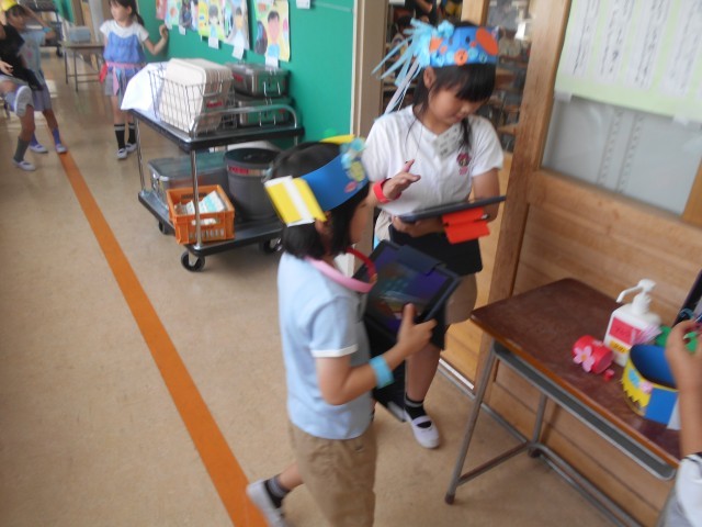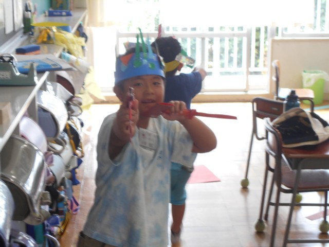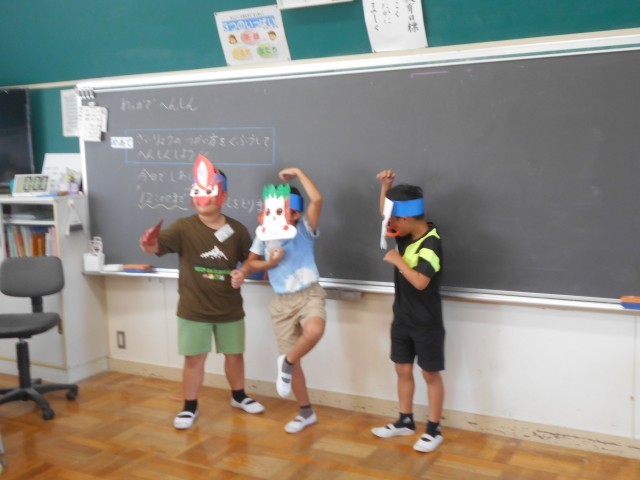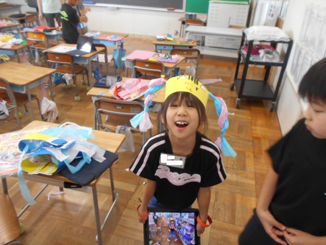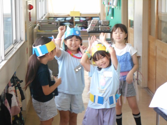 「どんなものにへんしんしようかなあ?」といろいろ考えて作っている様子が見られました。できたら記念撮影です。