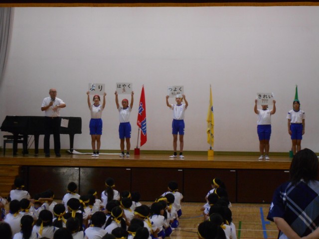 私からは、主役になるためには、「よりはやく、よりつよく、よりきれいに」するために、自分でどうしたらよいかを考えて練習に取り組んでほしい。