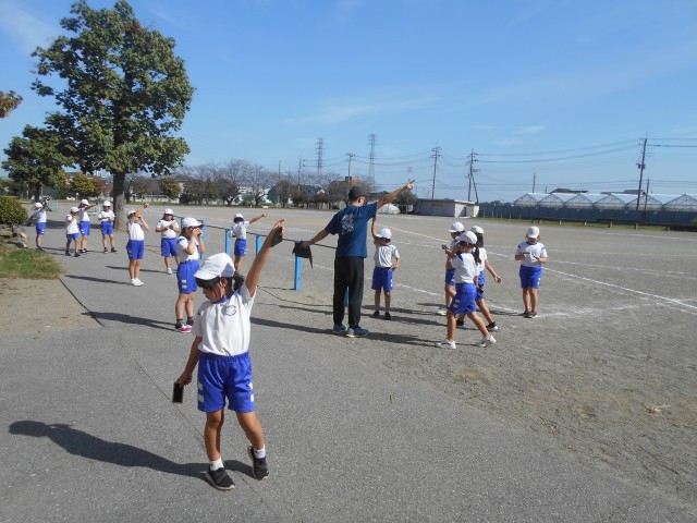太陽を指さしながらみて、そのあと自分の影を確認しているようです。