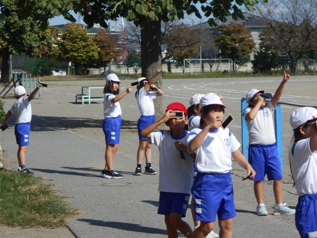 太陽の動きと太陽の光によってできる「かげ」の変化について学習しています。