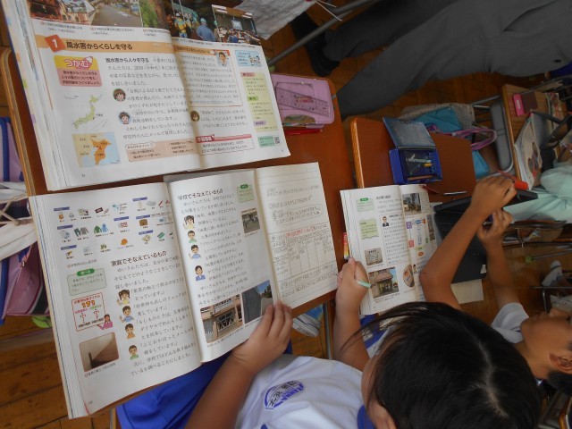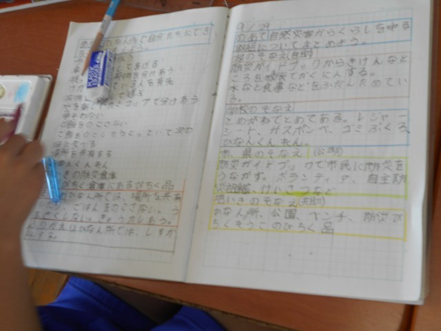 これまで、自分自身、家庭、学校、地域と様々な自然災害に対する備えを調べて来ましたが、今日はそのまとめです。PCを使ったり、ノートを整理したりしながら、各自いろいろな方法でまとめていました。