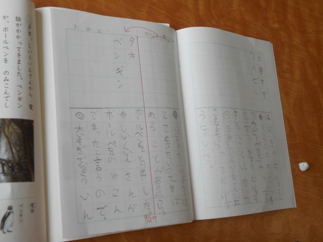 今日のめあては「筆者はどんな仕事をしたのか、そのわけとくふうを見つけながらたしかめよう。」ノートにしっかりまとめていました。