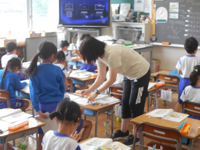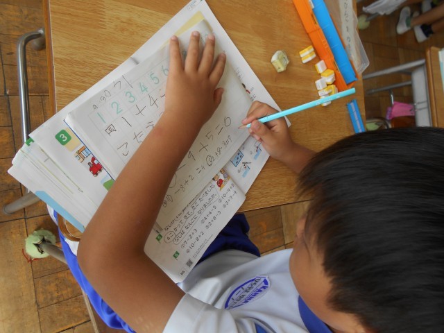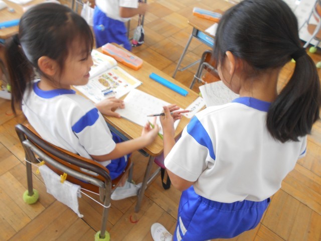 練習問題では、友だちどうしで○つけや教え合いをしていました。