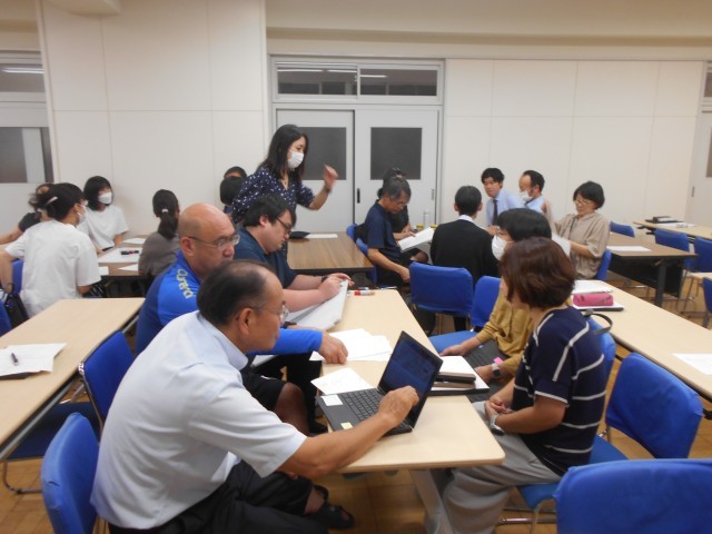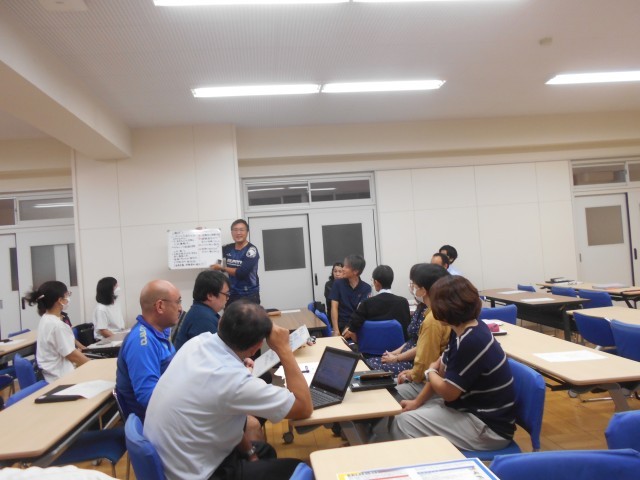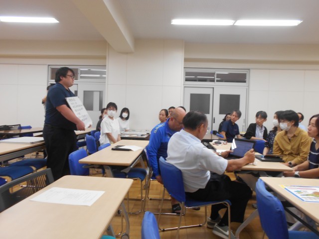 これは、藤岡市教育委員会が今年度より文部科学省委託事業「学校安全総合支援事業」として、県教育委員会から2年間の指定を受けた取組の一環です。「誰でも実践できる防災」「学校だけでなく、保護者を巻き込んだ防災」「防災を学ぶから防災で学ぶへ」「防災意識は普段の生活に生かす」「学校の避難訓練は子ども主体、子どもが考える内容に」等、問題意識を提起する内容でした。その後、グループでハザードマップを見ながら、家庭、学校、地域で今後どうしていけばよいか話し合いました。子どもの命を守るため、本校の防災教育、避難訓練に生かしていきたいと思います。