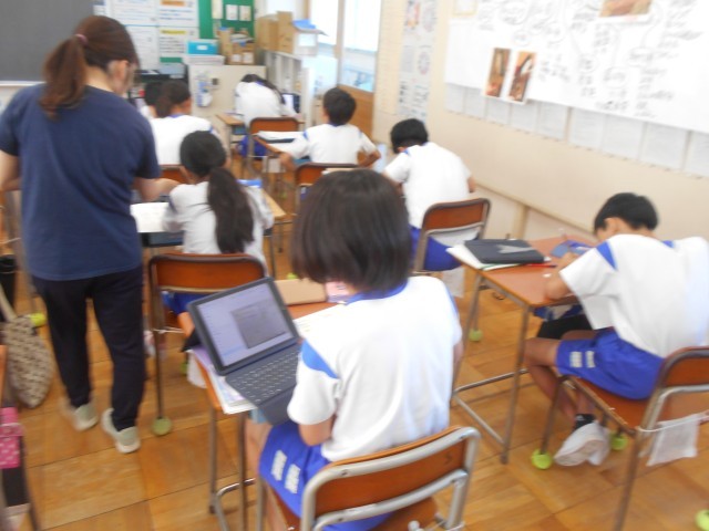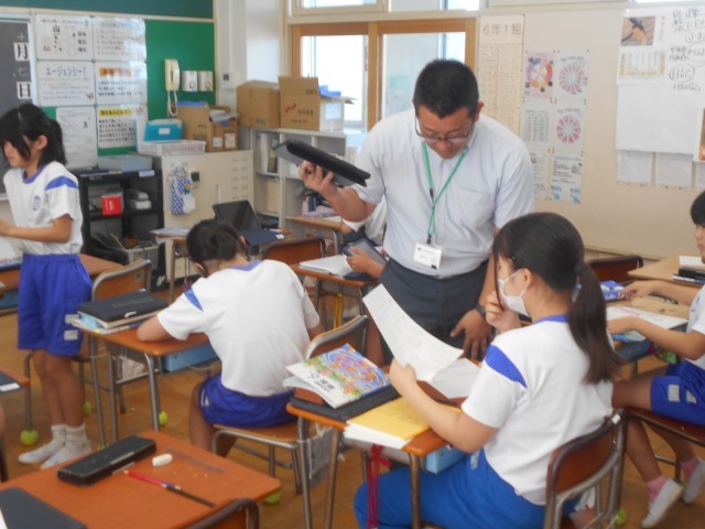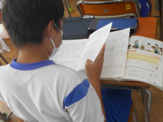 6年1組の算数の授業の様子です。群馬県総合教育センターで算数の授業づくりについて研究をしている本校の先生による授業。今日は6年生での単元の最終日です。4種類の問題の完成を目指しました。できた人は、次の課題にチャレンジし、自分のペースで学習を進めていました。これまでに学習してきたノートを振り返りながら取り組む姿もありました。子どもが主体の授業が展開されていました。