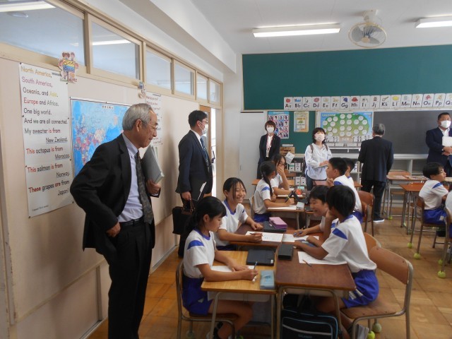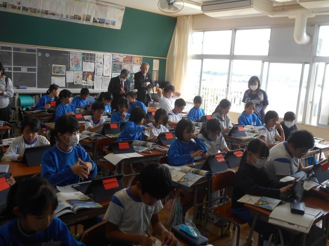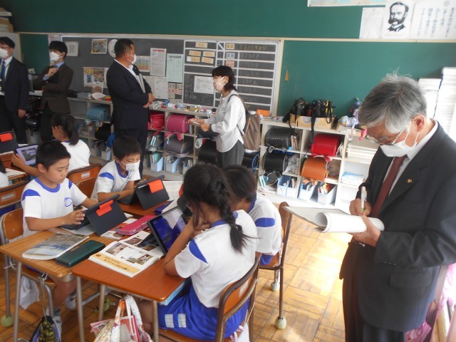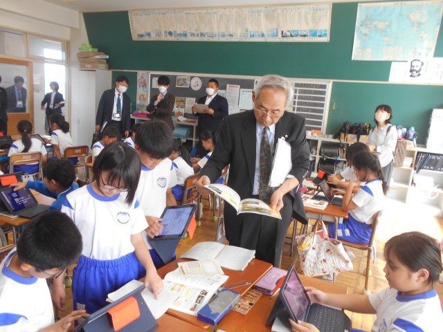 委員の皆さんには、タブレットを活用して意見交流する様子や富岡製糸場について、自分の課題をもって調べ学習に取り組む様子に授業を参観していただき、子どもたちが主体的に課題解決に向かう姿をほめていただきました。