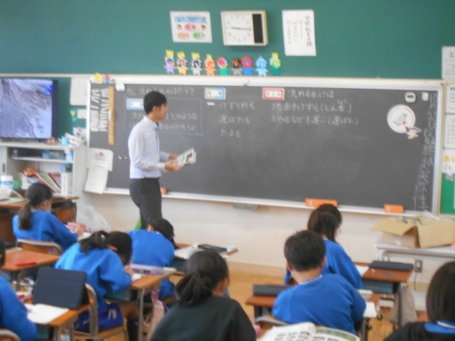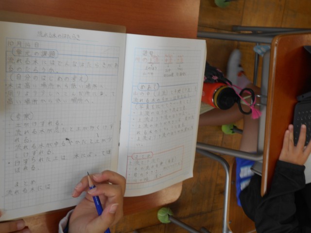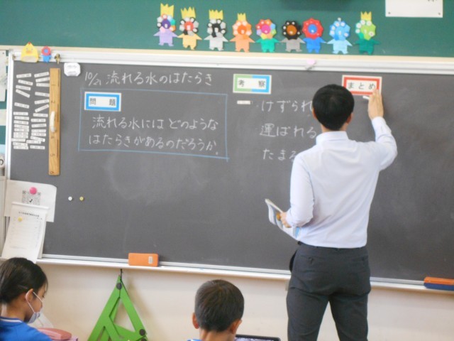 今日のめあては「流れる水にはどのようなはたらきがあるのだろうか?」
