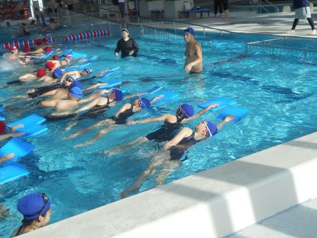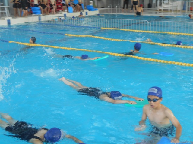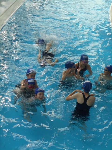 みずとぴあの指導員さんにお世話になって、5年生生最後の水泳授業が始まりました。