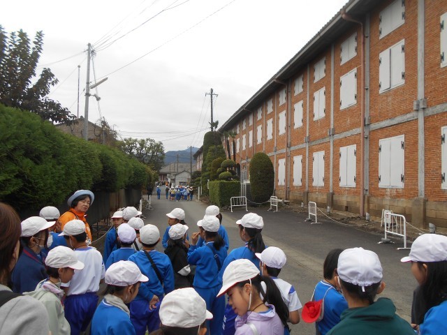 22日(水) 4年生は富岡市にある富岡製糸場と自然史博物館に校外学習に行ってきました。朝から気温が低く肌寒く感じられるなか、午前9時に元気いっぱいに出発しました。