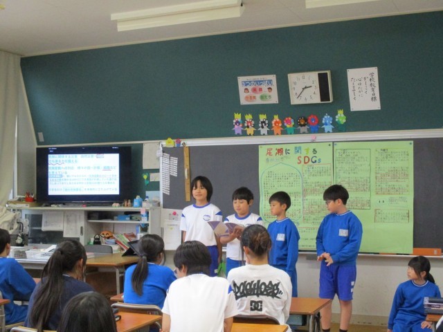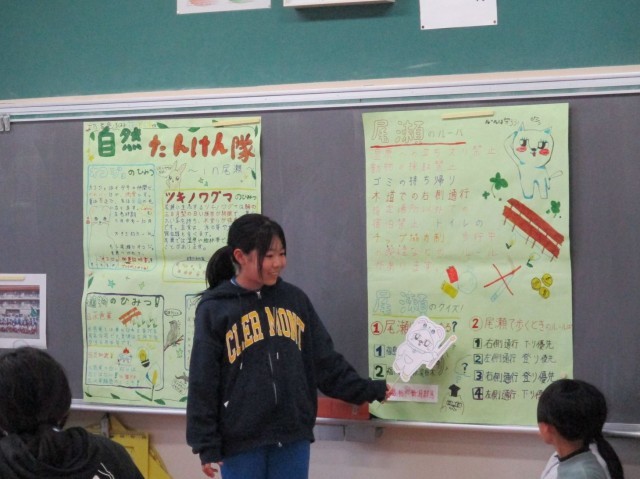 5年生では、6月に実施した尾瀬ネイチャーラーニングの事後学習として、尾瀬についての学習を進めてきました。今日はその集大成として、発表会を行い、尾瀬の自然の豊かさやその自然を守るための取組、SDGsの取組の大切さを伝えました。模造紙、動画、紙芝居など、それぞれ工夫を凝らした、グループの個性が光る発表で、聞いていて引き込まれてしまいました。