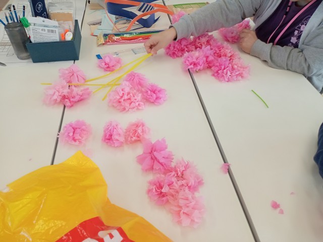 本日の午前中、多目的室では図書ボランティアの皆さんが集まり、ポップ等を作成してくださっていました。