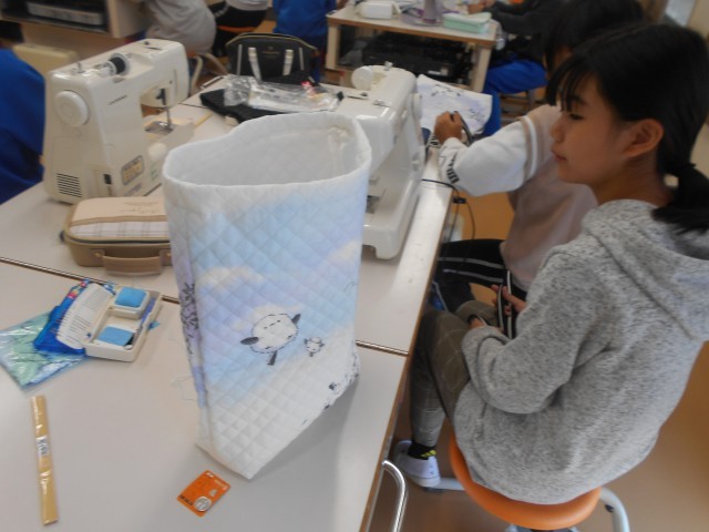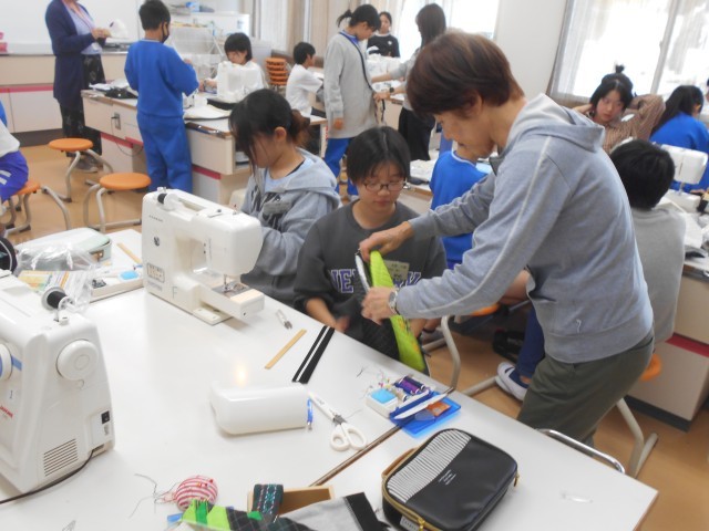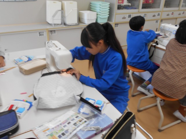 3・4時間目、2組でも家庭科の授業(「トートバッグをつくろう」)を行っています。