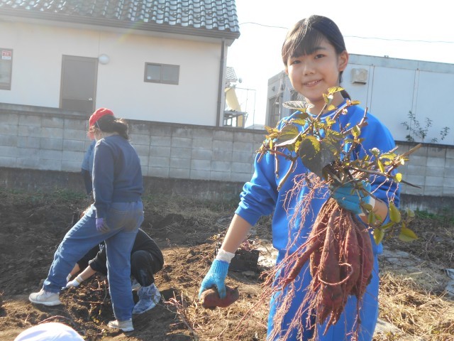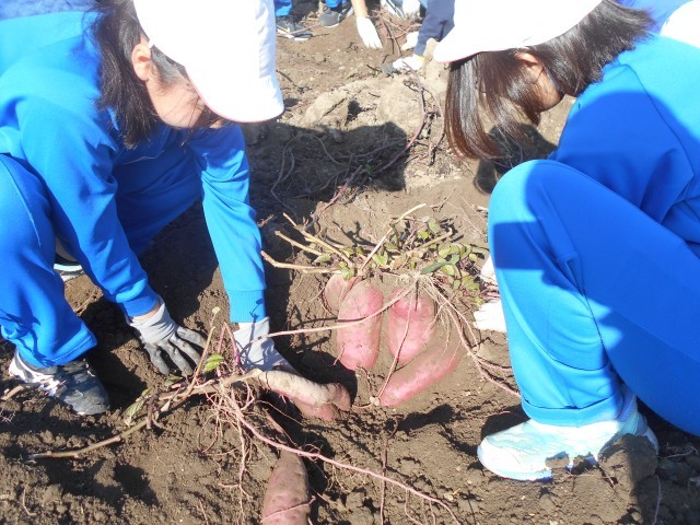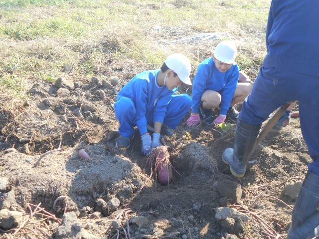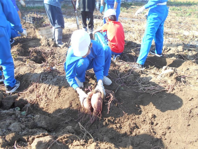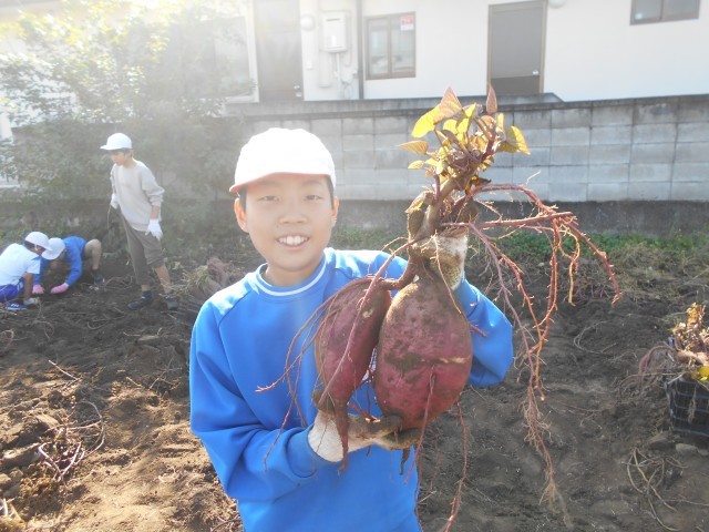 子どもたちは土の中にどっしりと構えた大きなお芋と格闘しながら、楽しみながら収穫しました。