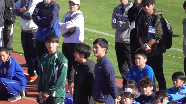 今大会は開会式のあと、先日の世界陸上の4×100mリレーで日本代表として出場した本県出身の東洋大学柳田選手と井上選手らによる陸上教室(走りのデモンストレーション)が行われ、世界とたたくアスリートの走りを生で感じることができました。