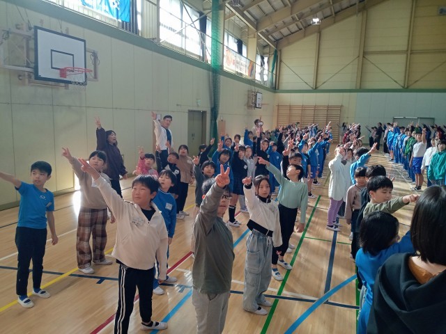 「Wish」では、6年生がきれいなハーモニーで合唱をリードしてくれました