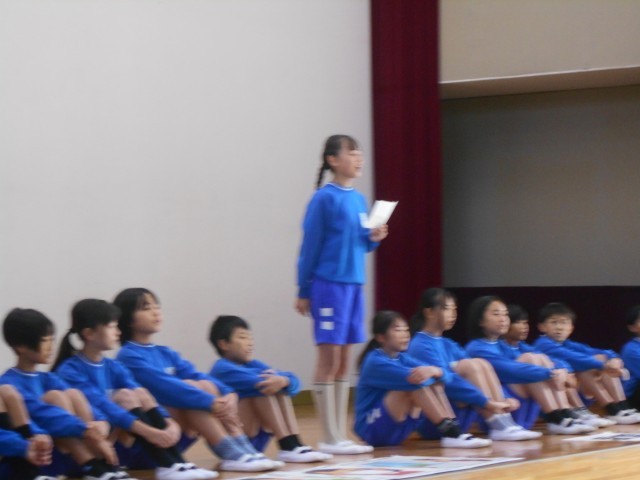 音楽集会の終わりに、保健委員会より全校児童に大事な連絡がありました。