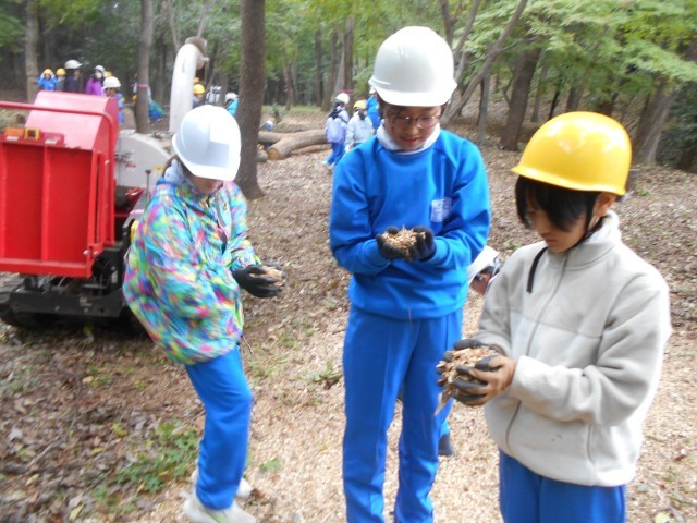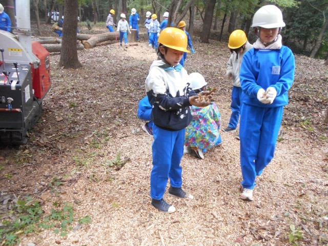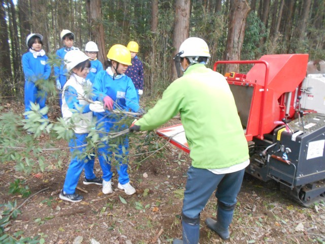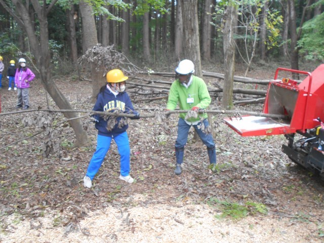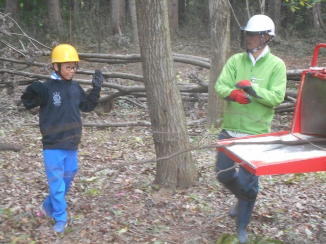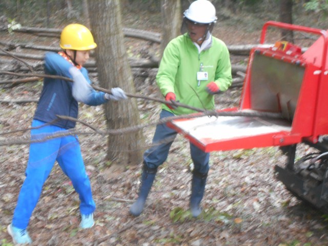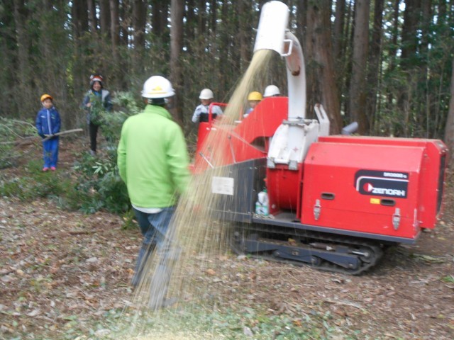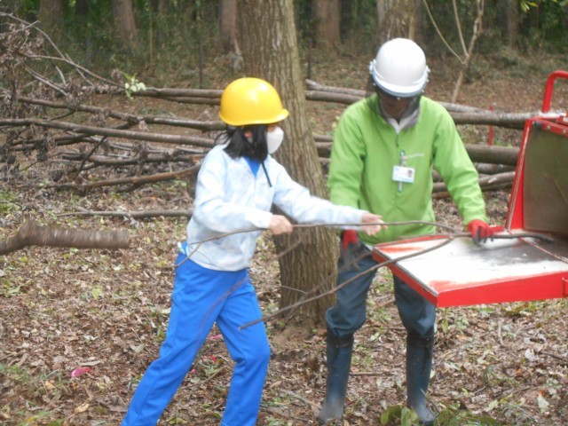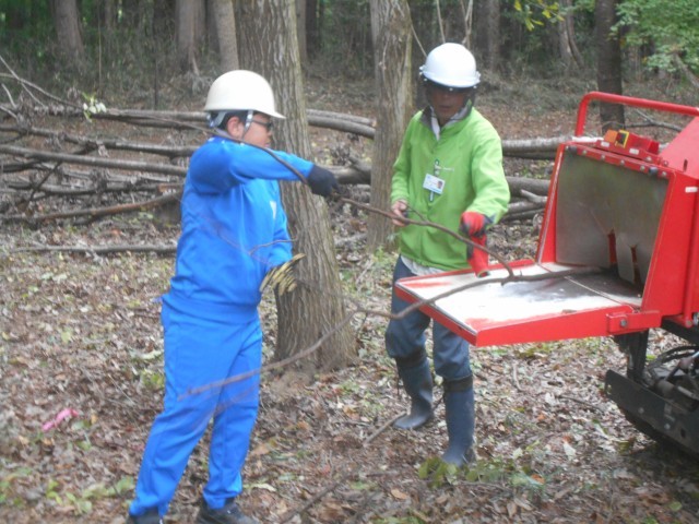 枝を切ったあとは、その枝を土に戻すためにチップにする機械で粉砕します。