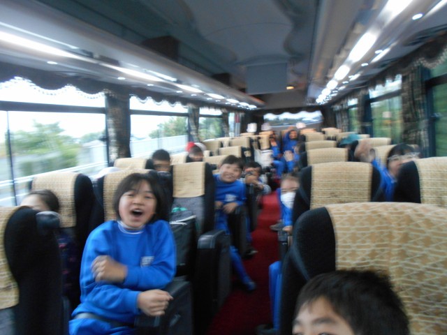 帰りのバス内でもレク係が中心となって盛り上がっていました。(1組)