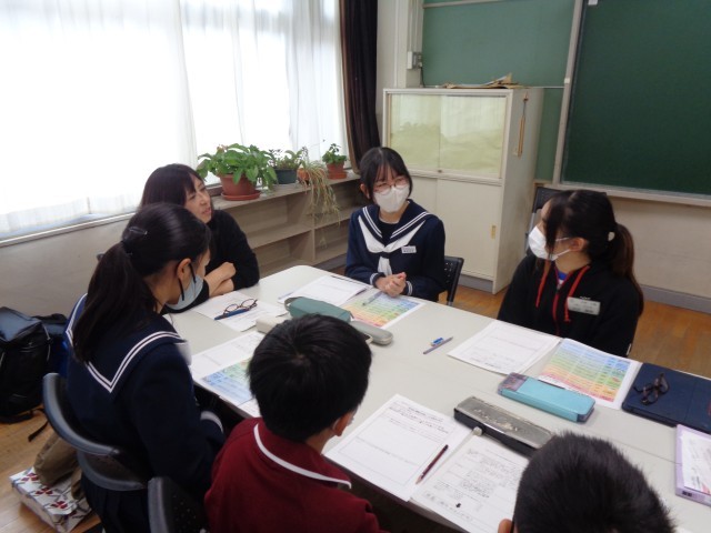 第二小と本校の児童会、北中学校の生徒会の代表とぽらりす委員による話し合いを行いました。