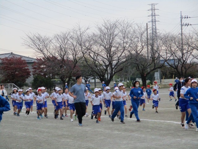 今朝の業前活動は「らんらんタイム」に取り組みました。「スーパースター」に合わせて準備運動を行ったあと、学年ごとに決められたコースを走ります。各学年の子どもたちを5年生の体育委員が先導しながら、それぞれのペースで元気いっぱい走ることができました。