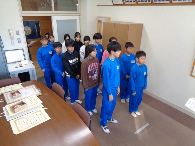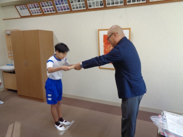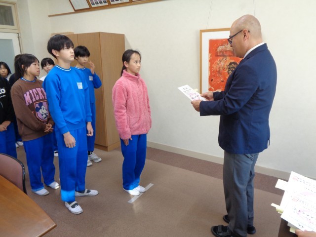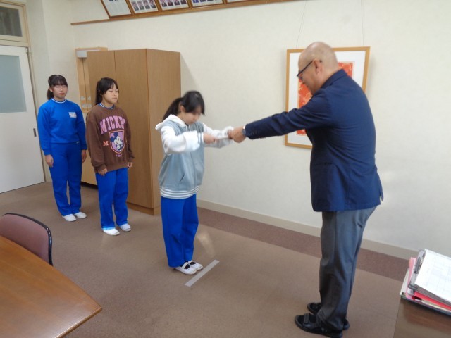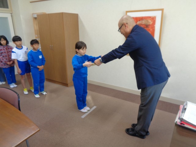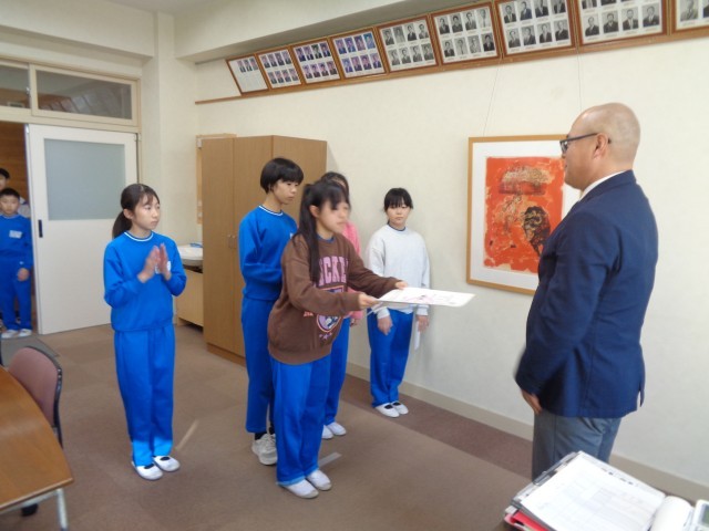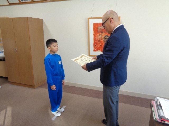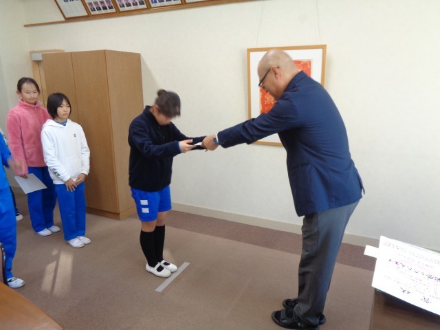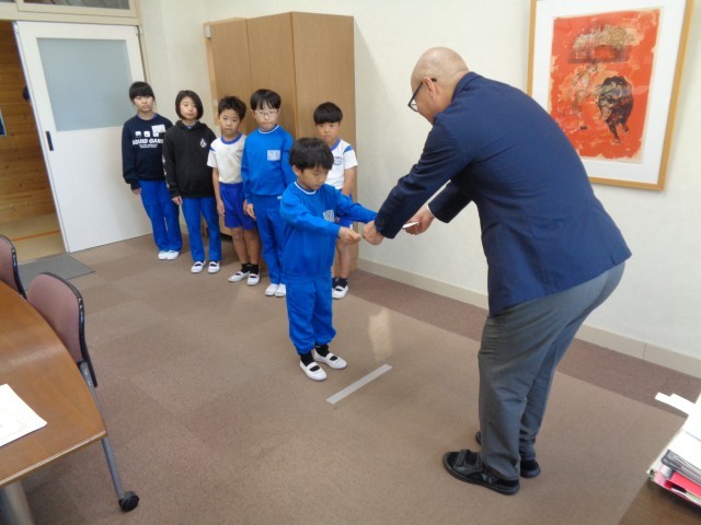社会体育や各種団体主催の大会の表彰も、20分休みに校長室で行いました。