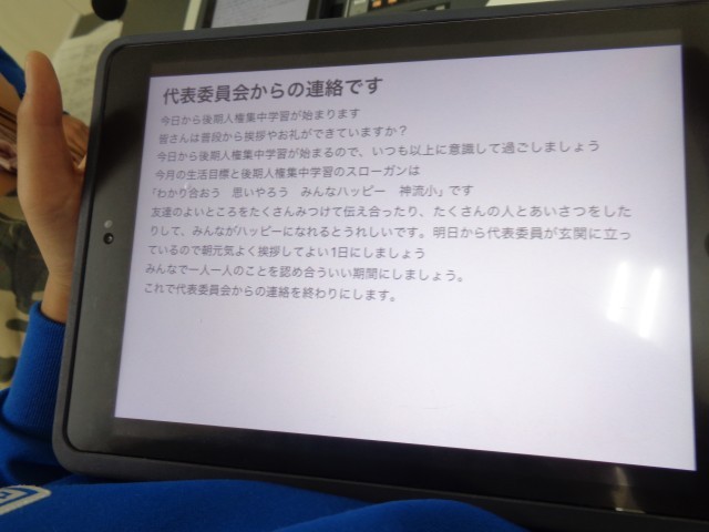 今日から後期人権集中学習が始まるので、いつも以上により意識して過ごしましょう。