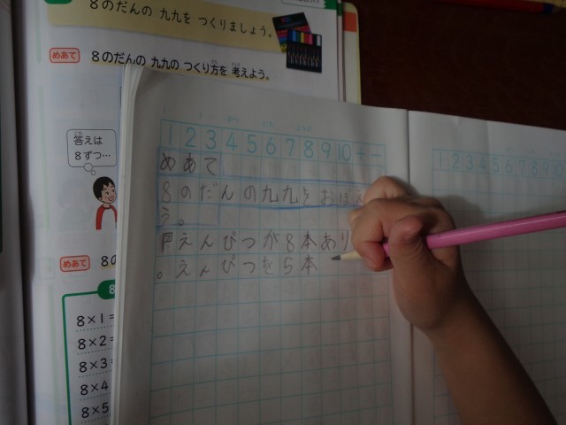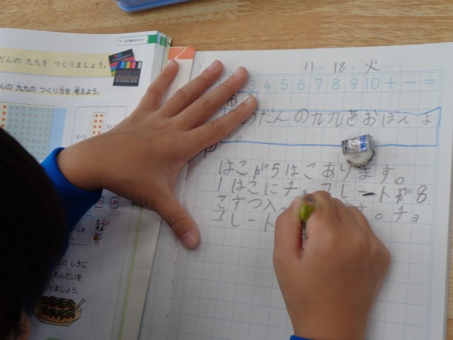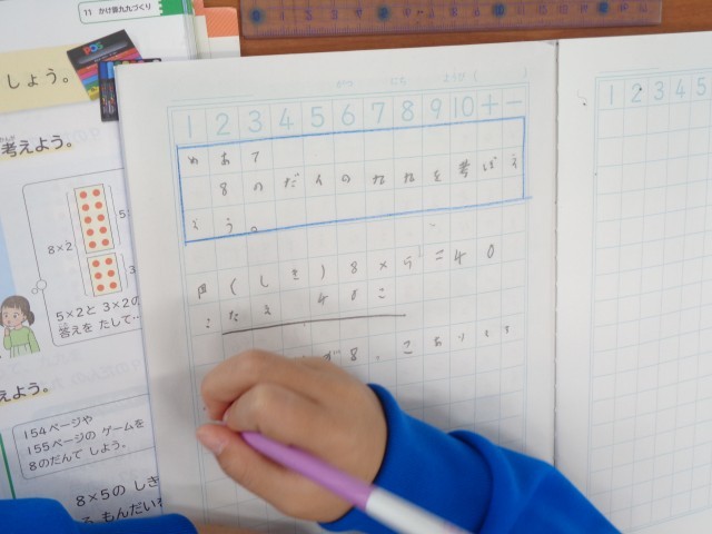 「かけ算の式から、自分なりの問題をつくろう」という課題に挑戦していました。