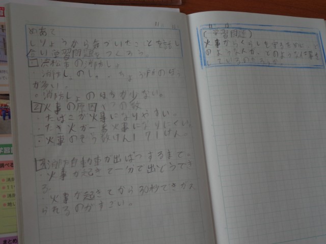 「火事からくらしを守るためにどのような人たちがどんな仕事をしているのだろうか?」という学習課題を立てました。