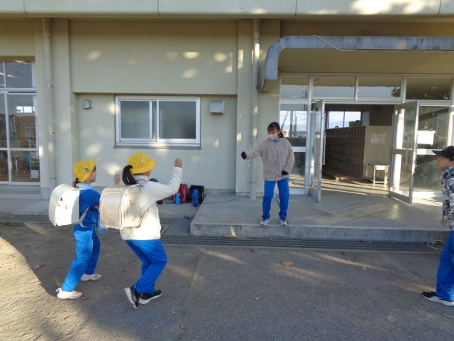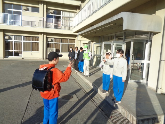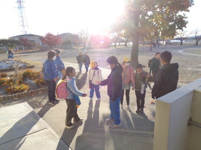 今朝は、今年一番の冷え込みでしたが、寒さに負けずに、登校してくる人たちに笑顔であいさつをするのはもちろん、話しかけたり、じゃんけんをしたりして、朝から活気のある神流小でした。