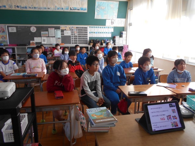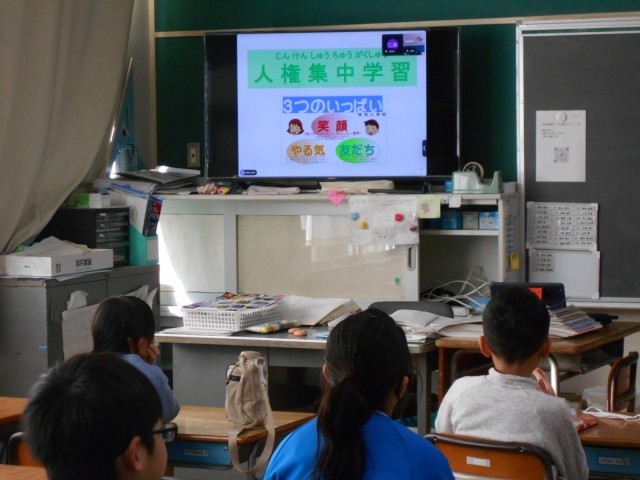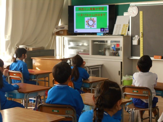 (概略)「今から約77年前の1948年に 国際連合という(せかいのかいぎ)で「世界人権宣言」が決められました。それを受けて、日本では12月4日~10日を人権週間。12月10日を「人権デー」と定めました。これに先立って、神流小では、今週月曜日17日から来週金曜日28日までを、人権集中学習期間とします。この間に、命の大切さや友だちのことを真剣に考えて、思いやりのあるやさしい言葉や行動が神流小学校いっぱいにあふれるようにして欲しいとおもいます。