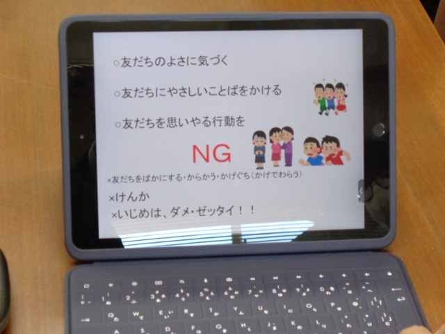 19日(水)人権集中学習期間3日目、業前の時間に人権講話として私から子どもたちに二つのお願いをしました。