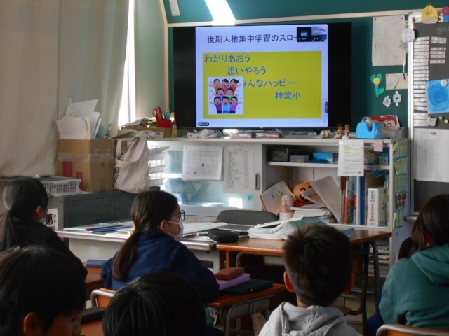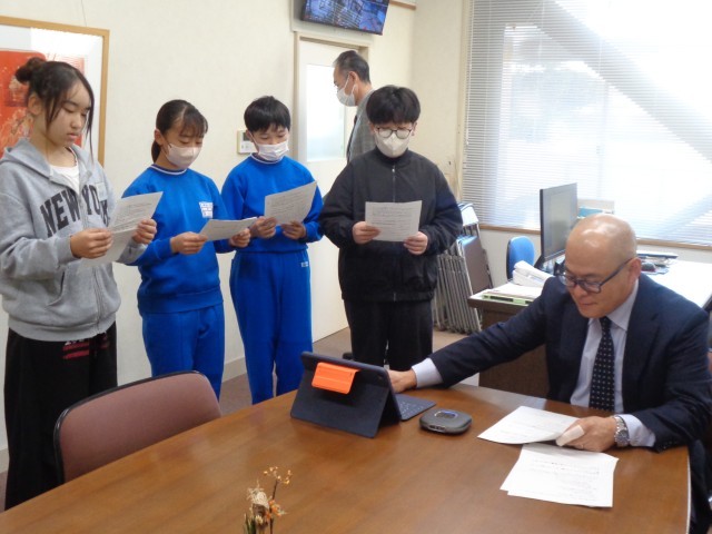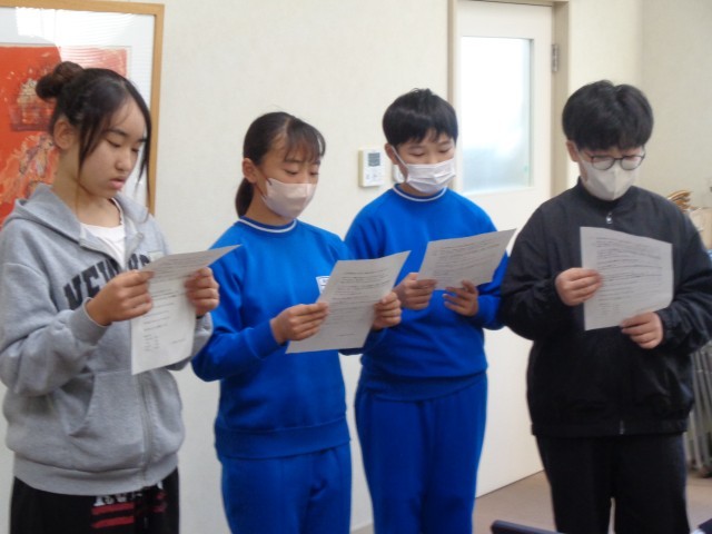 11月5日に藤岡第二小学校で行われた学校運営協議会で、委員さんと、第二小の児童会と北中の生徒会の人たちと、いじめをなくすための話し合いを行いました。けさは、そ子で決まったことをお知らせしました。