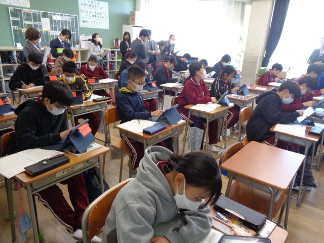 第二小の児童達も、落ち着いた雰囲気の中で、タブレットを道具として上手に使いながら学習を進めていました。