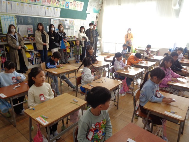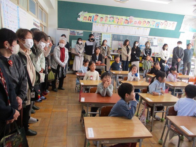 保護者の皆さんはもちろん、学校運営協議会委員さんを始め、日頃からお世話になっている区長さんや民生児童委員・更生保護女性会の皆さん、校区にある幼稚園・子ども園の先生方など多くの方に来校いただき、授業の様子を参観いただいたり、子ども達の作品などを鑑賞していただきました。