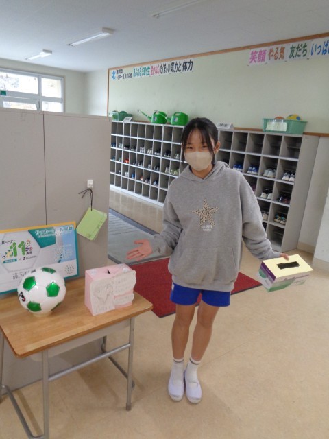 友だちからされてうれしかったことやよかったこと、友だちのよい行いなどを用紙に書いて、西玄関に置かれた「人権宝箱」に入れてもらい、昼の放送の時間に紹介しようという取組です。
